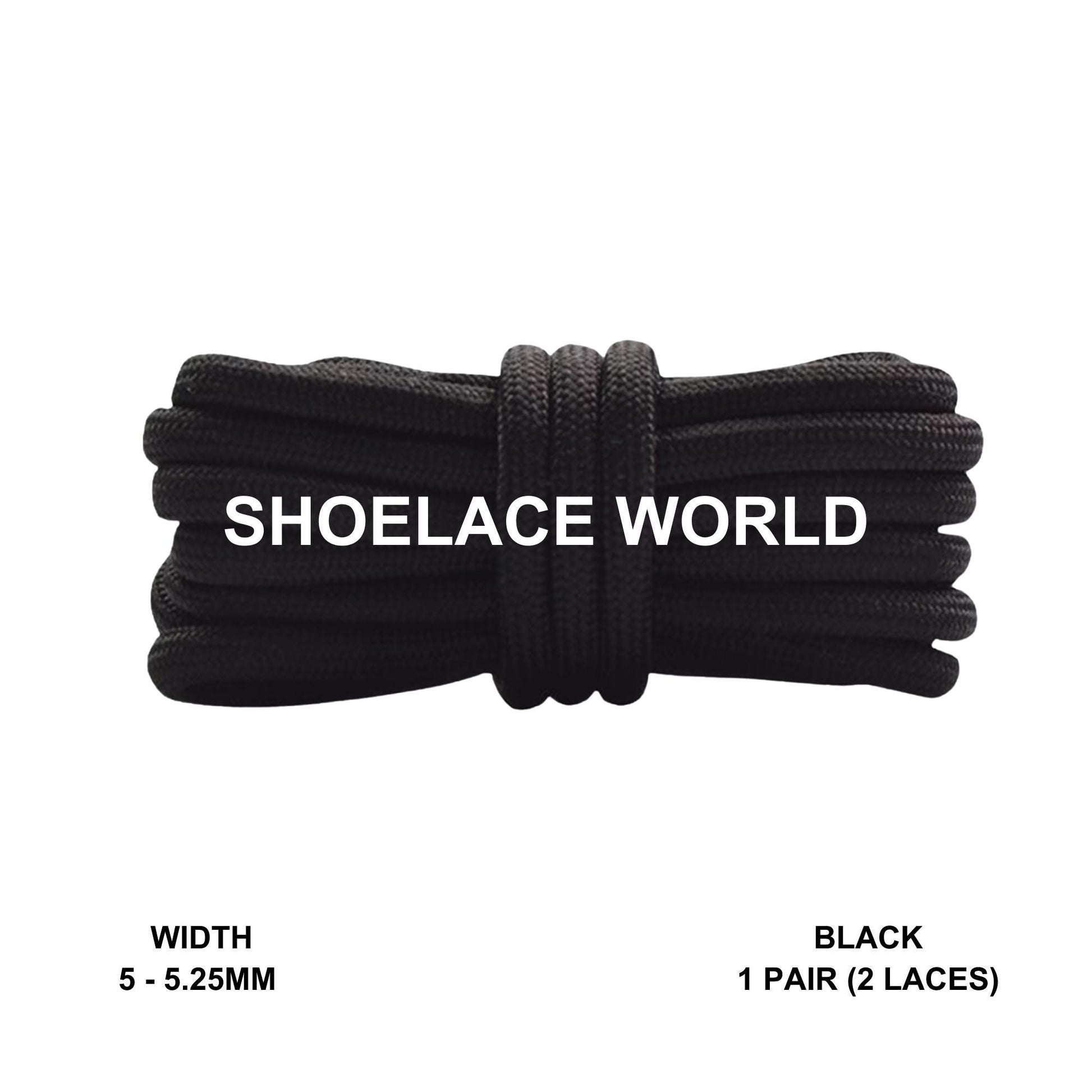 Black Classic Rope Shoelaces 5mm - 5.25mm Classic Colorful Laces Ships Out From The USA Next Day