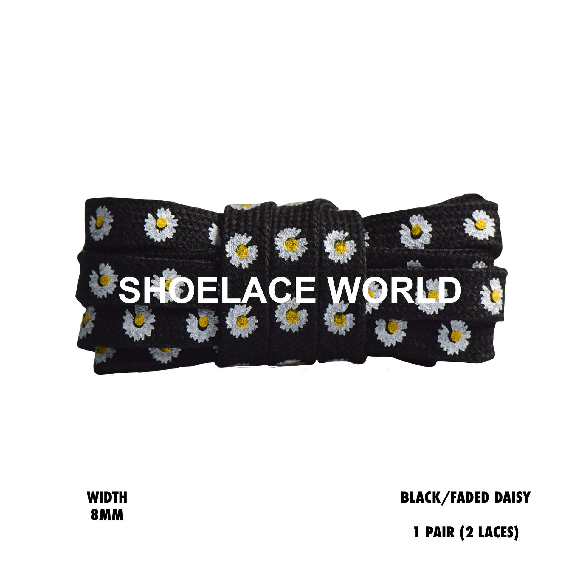 Black / Faded Daisy Print Flat Shoelaces 8mm Colorful Printed Laces Ships Out From The USA Next Day