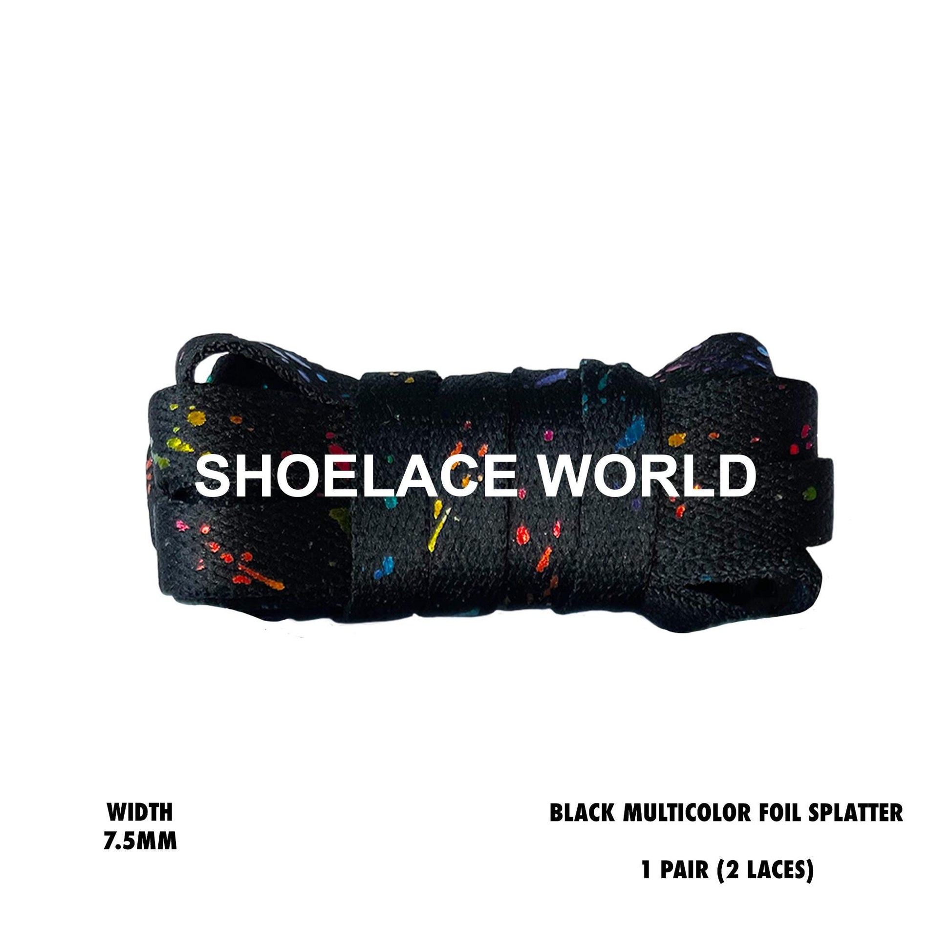 Black Multicolor Foil Splatter Flat 7.5mm Shoelaces Cool New Laces Ships Out From The USA Next Day