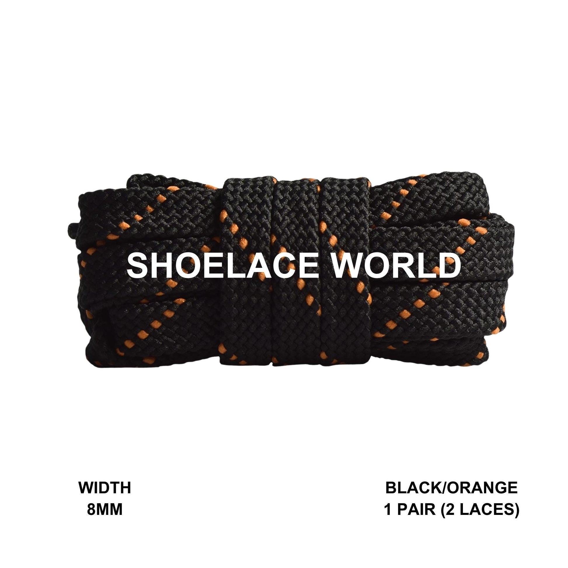 Black / Orange Pattern Flat Shoelaces 8mm Colorful Pattern Laces Ships Out From The USA Next Day