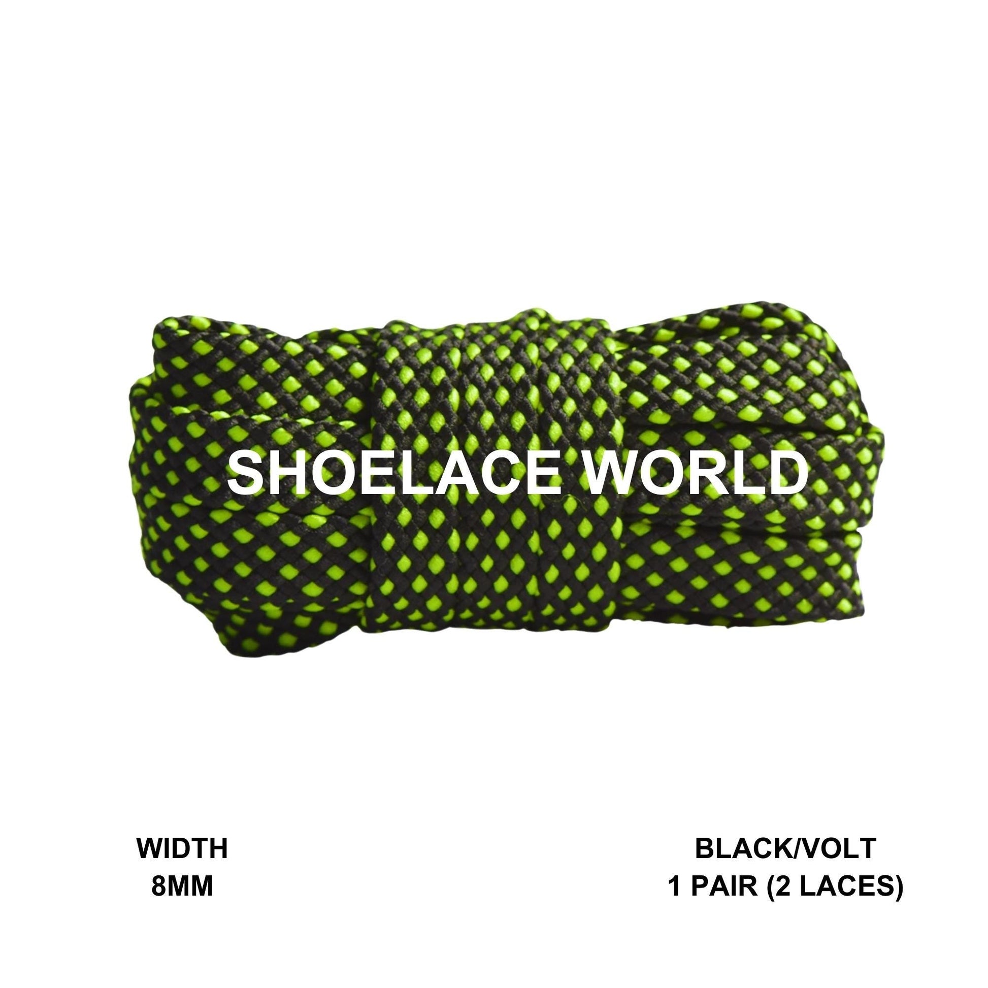 Black / Volt Dot Pattern Flat Shoelaces 8mm Colorful Pattern Laces Ships Out From The USA Next Day