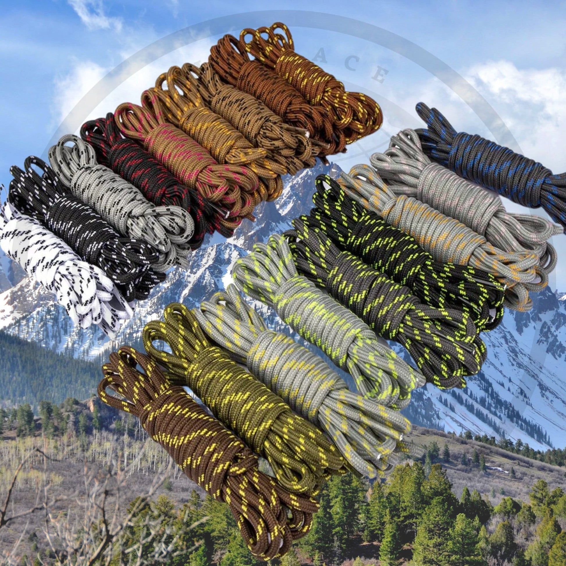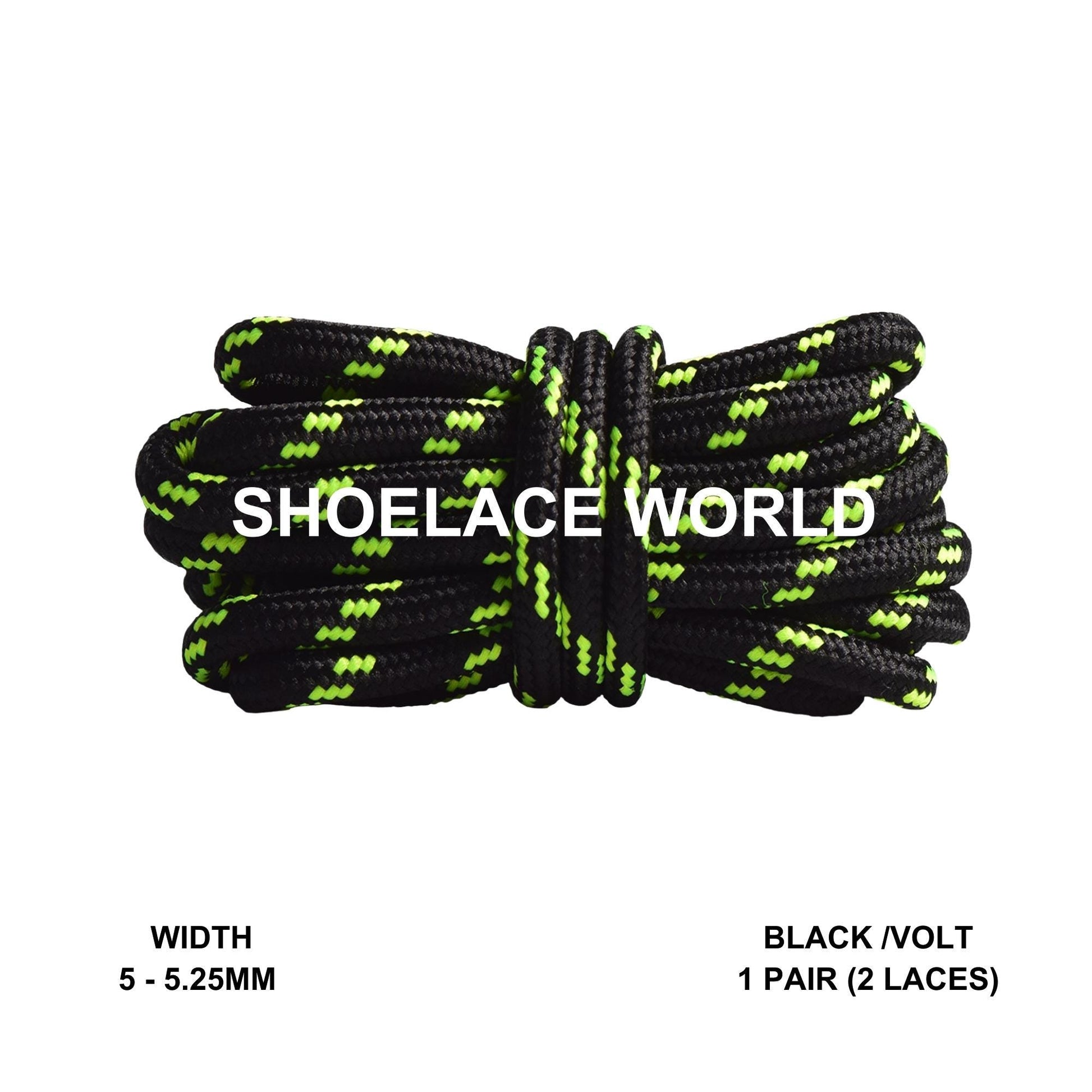 Black / Volt Rope Round Shoelaces 3/16 Inch 5-5.25mm For Boot Hiking Jogging Trekking Durable Laces Ships Out From The USA Next Day