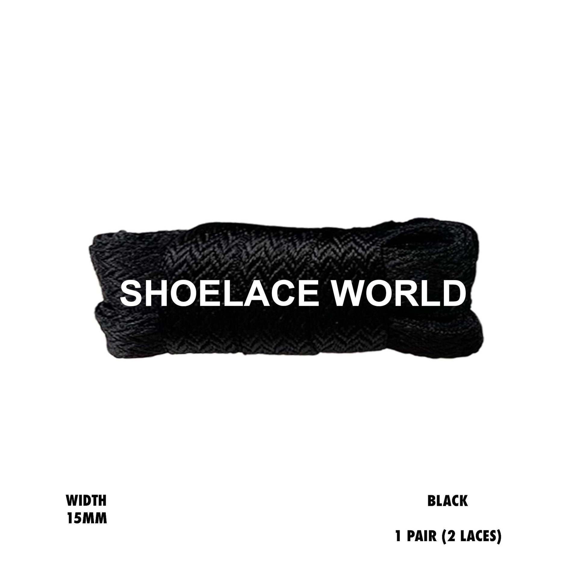Black W-Threaded Pattern Premium Double Layer Flat Shoelaces 15mm Colorful Pattern Laces Ships Out From The USA Next Day