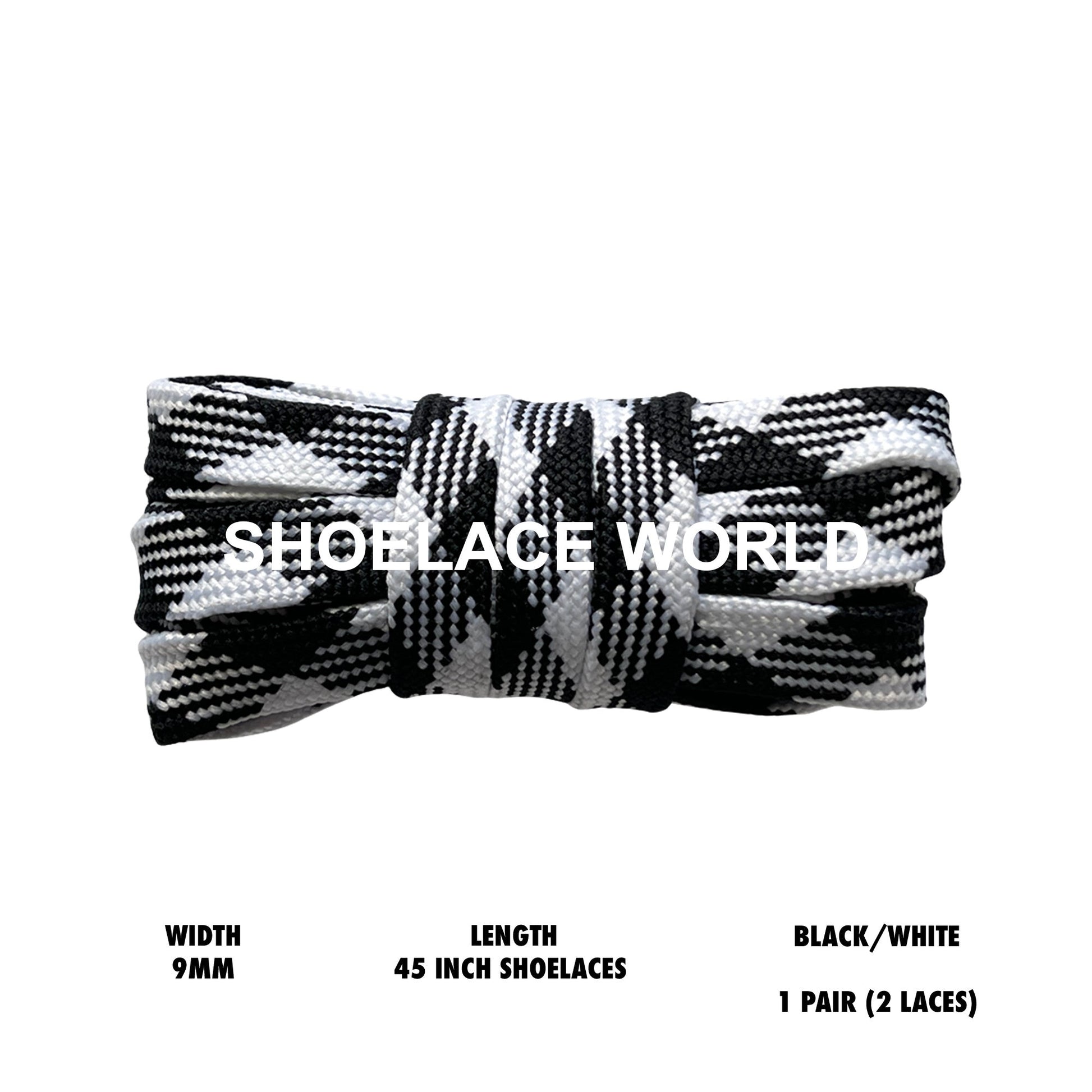 Black / White 45 Inches Prism Flat Shoelaces 9mm Colorful Pattern Laces Ships Out From The USA Next Day