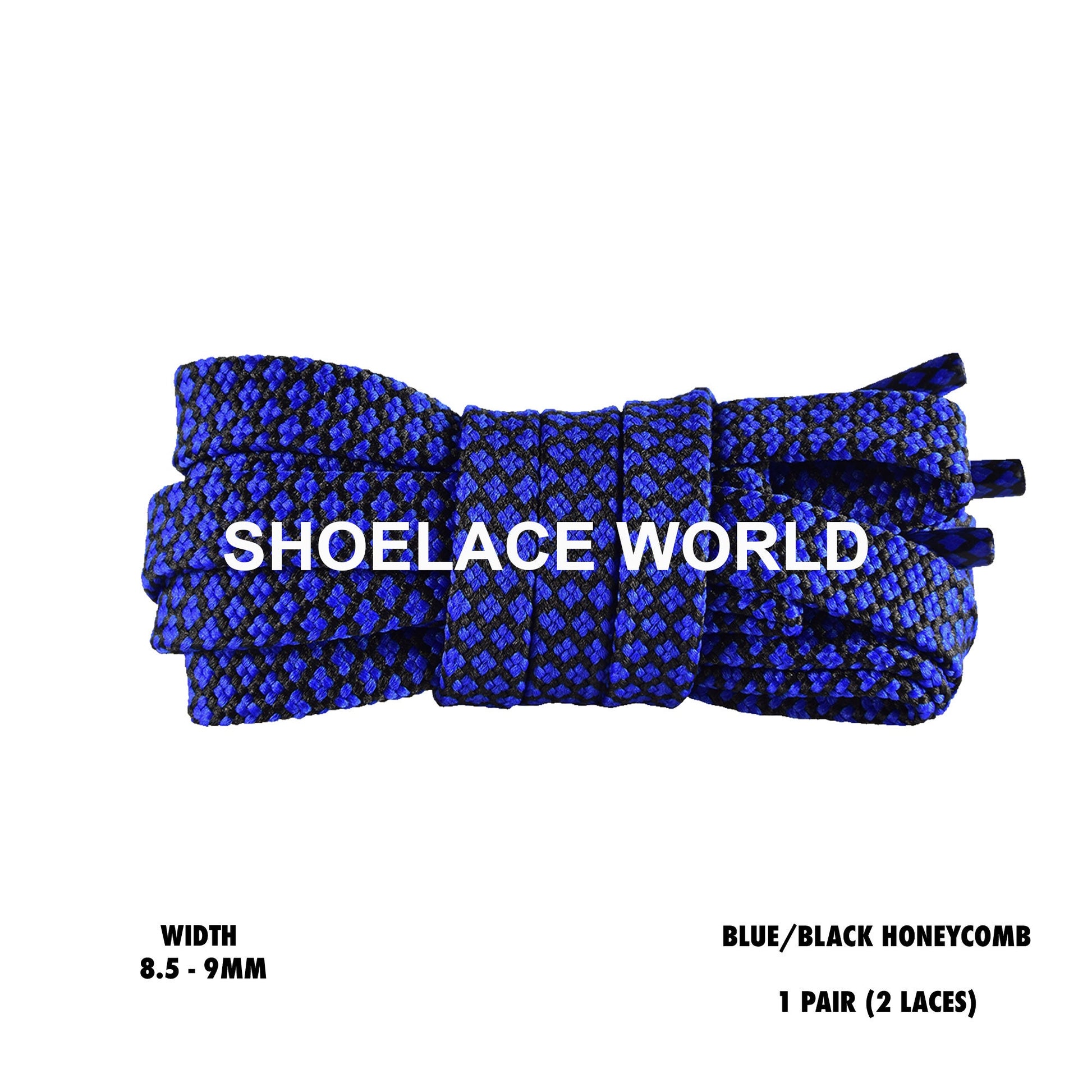 Blue / Black Honeycomb Two Tone Flat Shoelaces 8.5 - 9mm Colorful Pattern Laces Ships Out From The USA Next Day