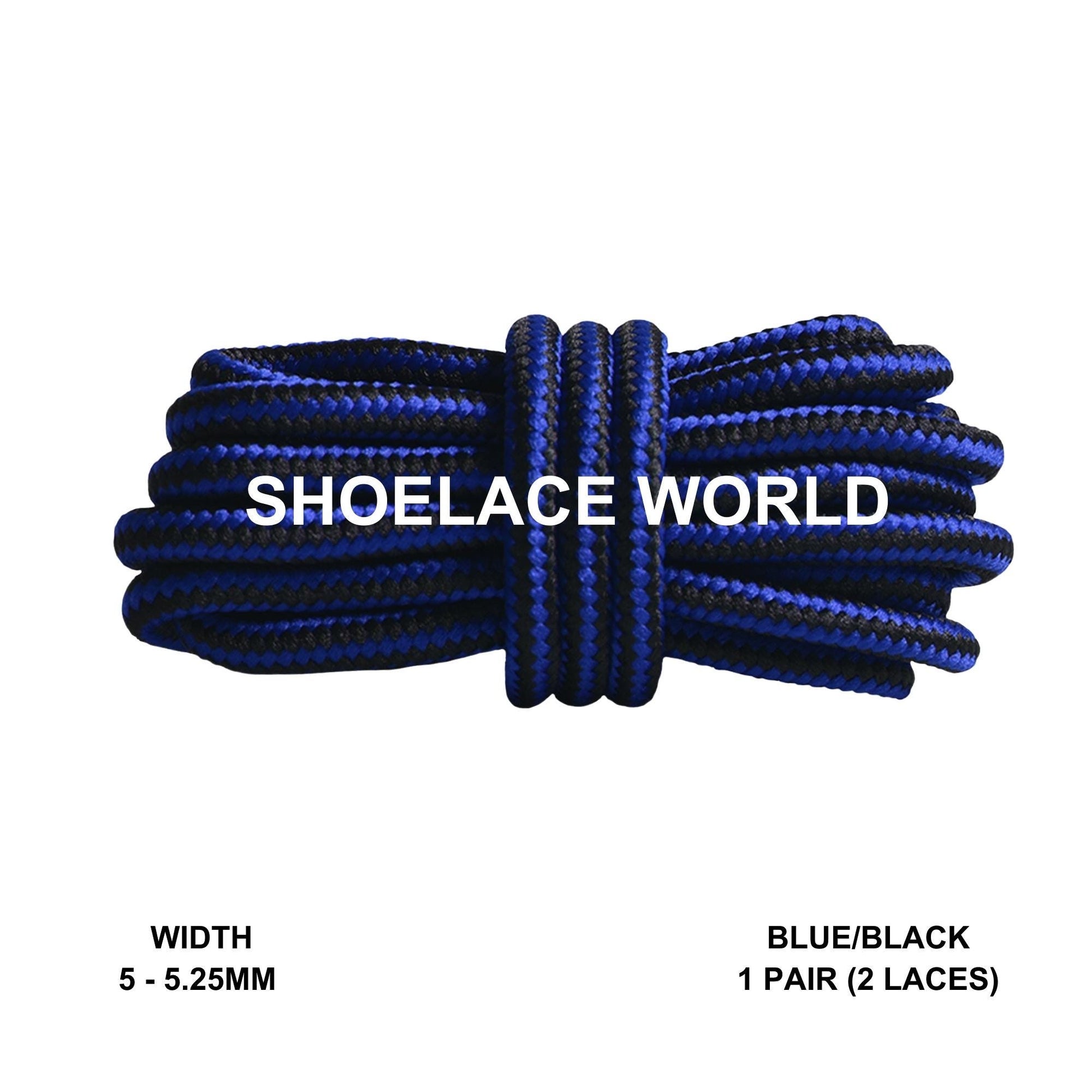 Blue / Black Round Work Boots Shoelaces 5-5.25mm Classic Colorful Boot Laces Ships Out From The USA Next Day