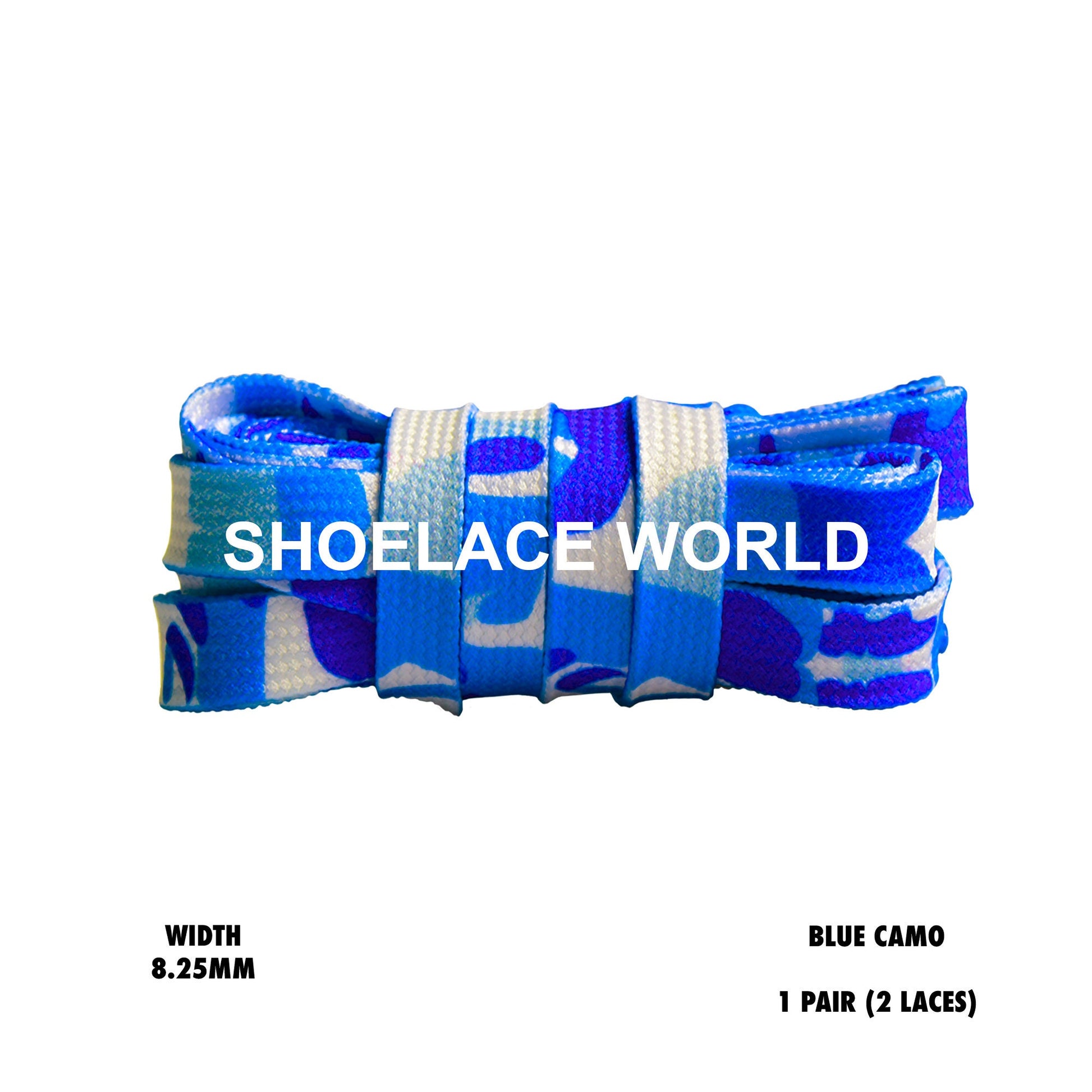 Blue Camouflage Flat Shoelaces 8.25mm Colorful Camo Pattern Laces Ships Out From The USA Next Day
