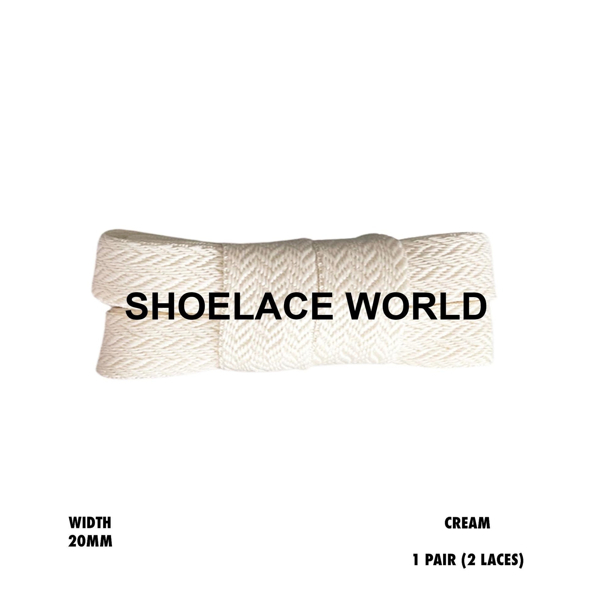 Cream W-Threaded Pattern Premium Double Layer Flat Shoelaces 20mm Colorful Pattern Laces Ships Out From The USA Next Day