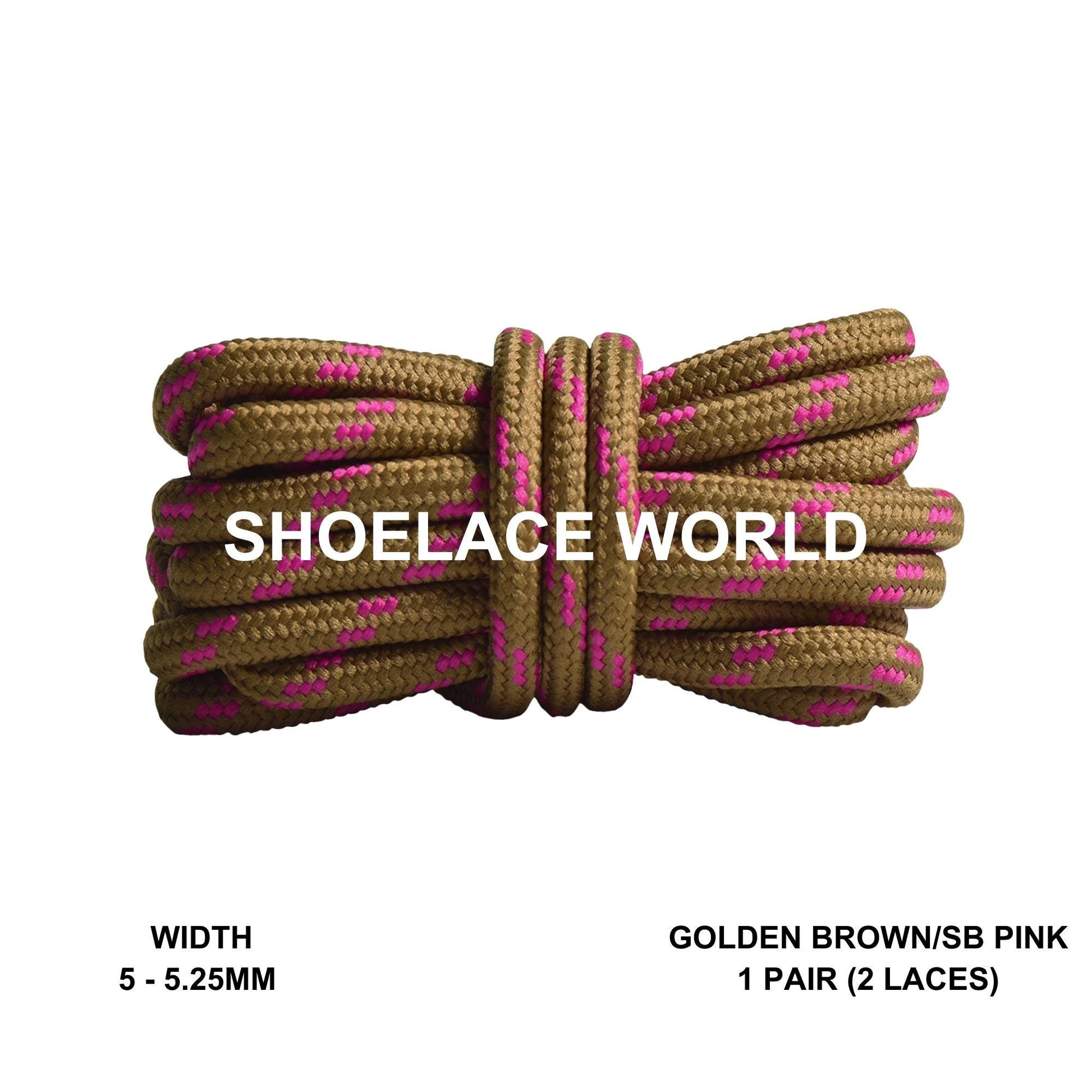 Golden Brown / SB Pink Rope Round Shoelaces 3/16 Inch 5-5.25mm Boot Hiking Jogging Trekking Durable Laces Ships Out From The USA Next Day