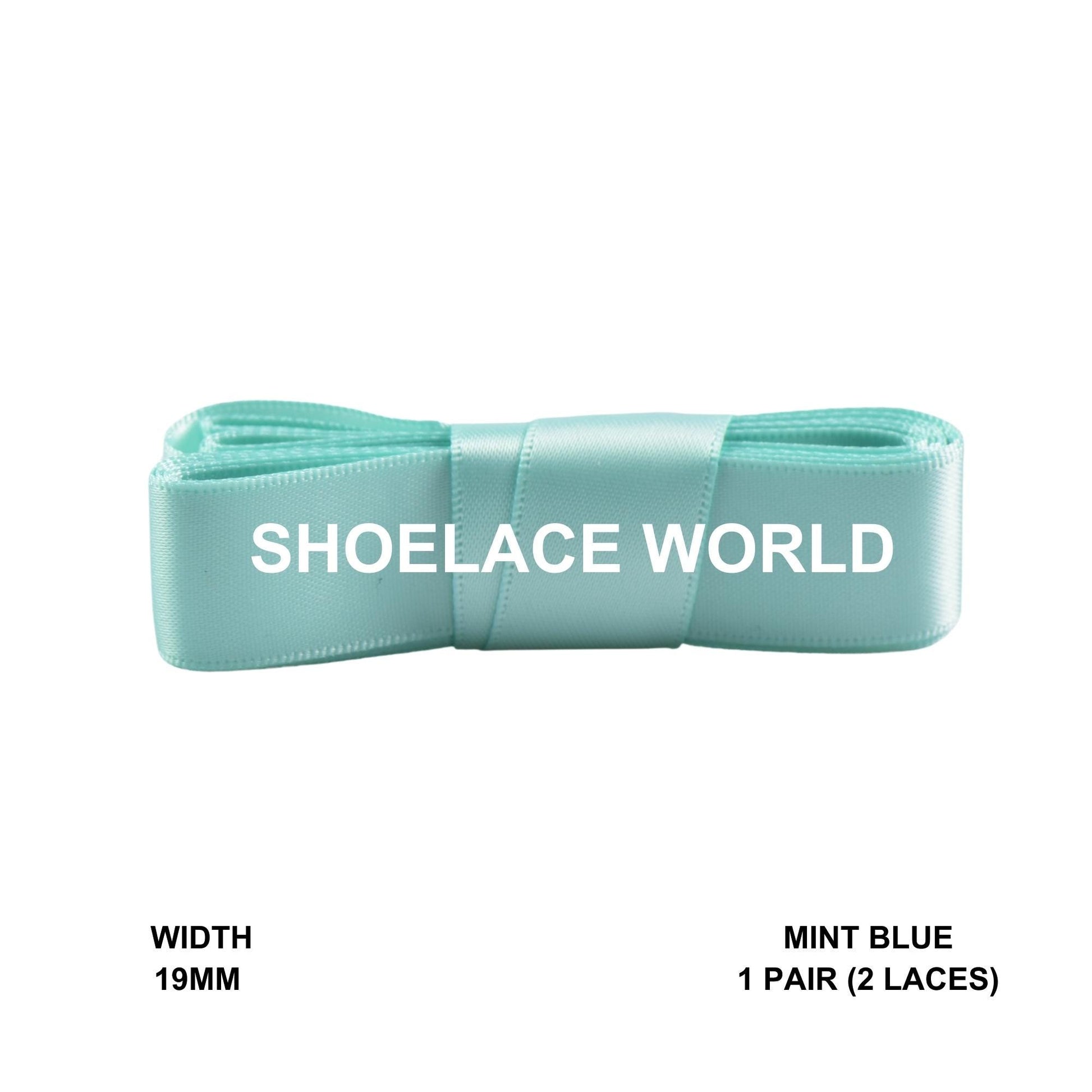 Mint Blue Ribbon Shoelaces 19mm 3/4th Inch Velvet Satin Laces Ships Fast From The USA