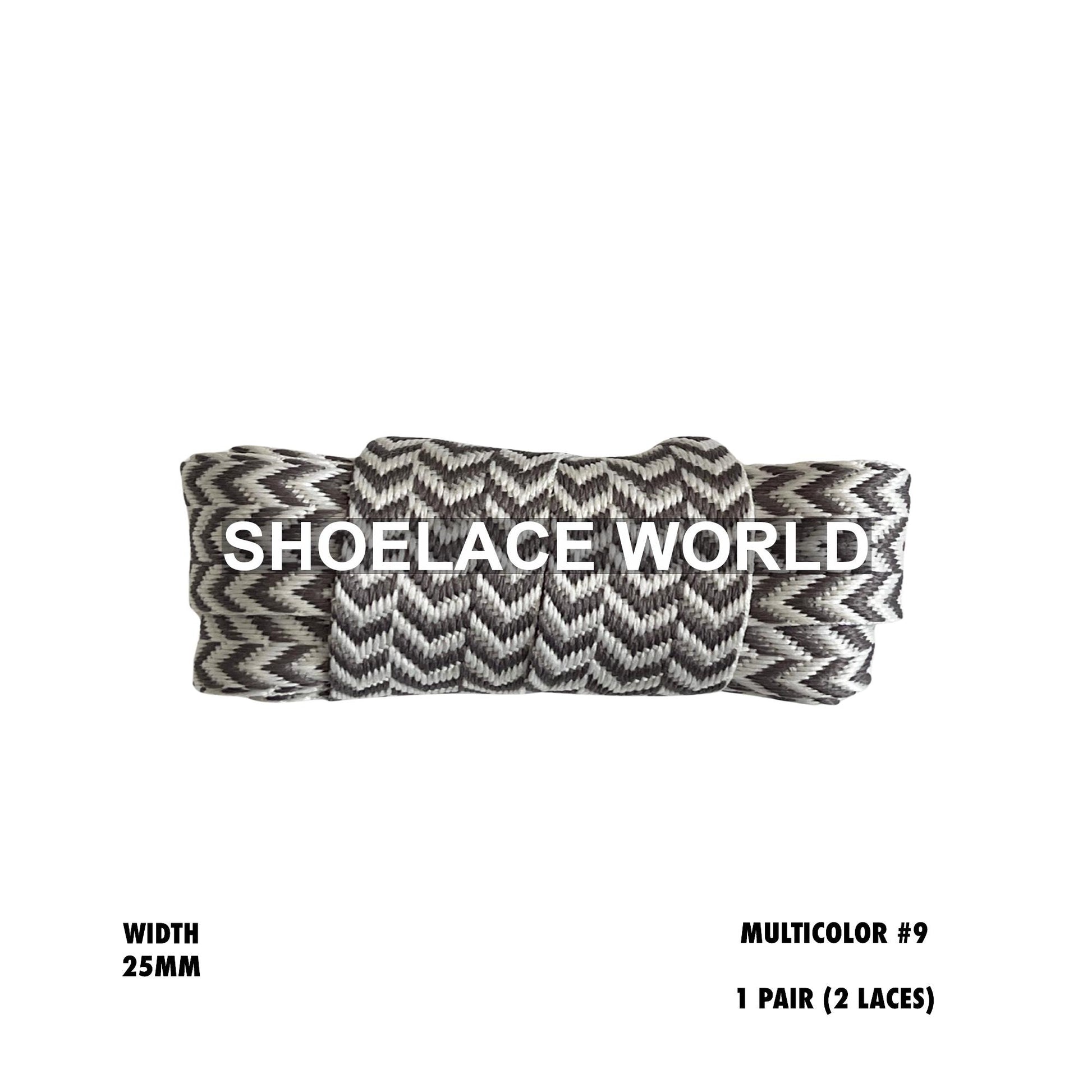 Multicolor #9 W-Threaded Pattern Wide Flat Shoelaces 25mm Colorful Laces Ships Out From The USA Next Day