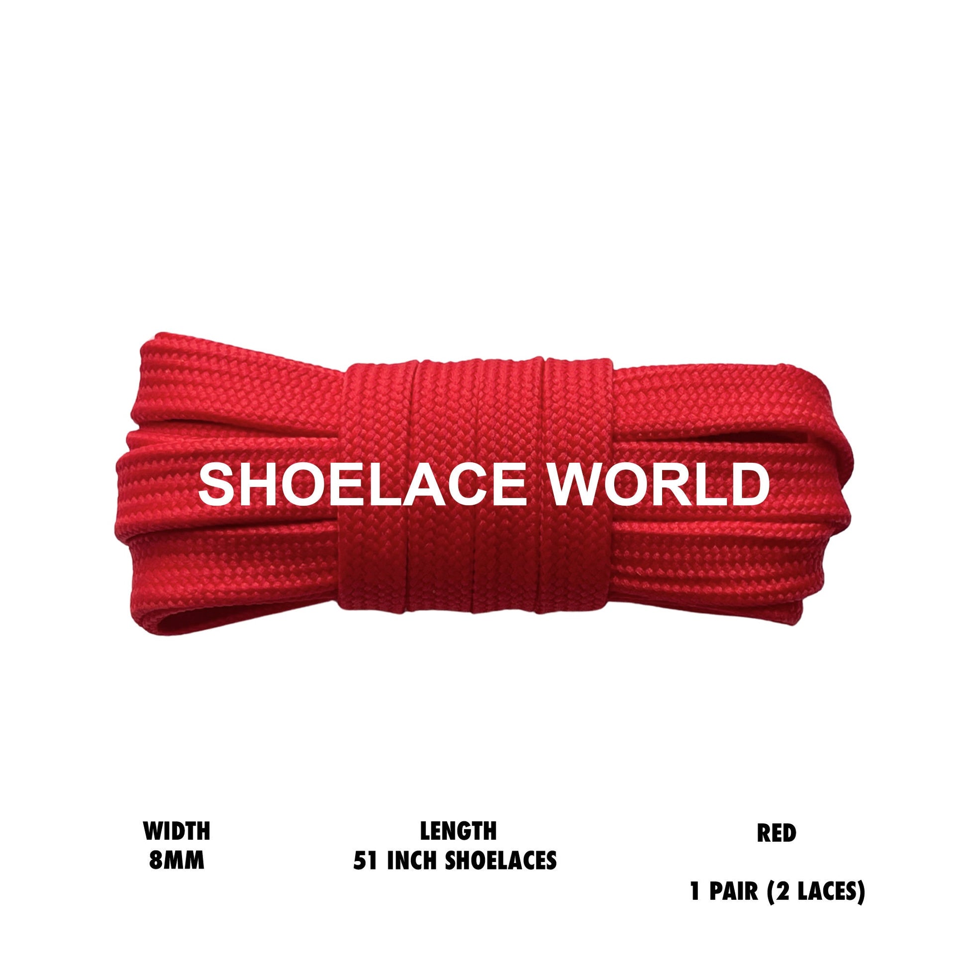 Red 51 Inches Double Layer Flat Hollow Shoelaces 8mm Colorful Laces Ships Out From The USA Next Day