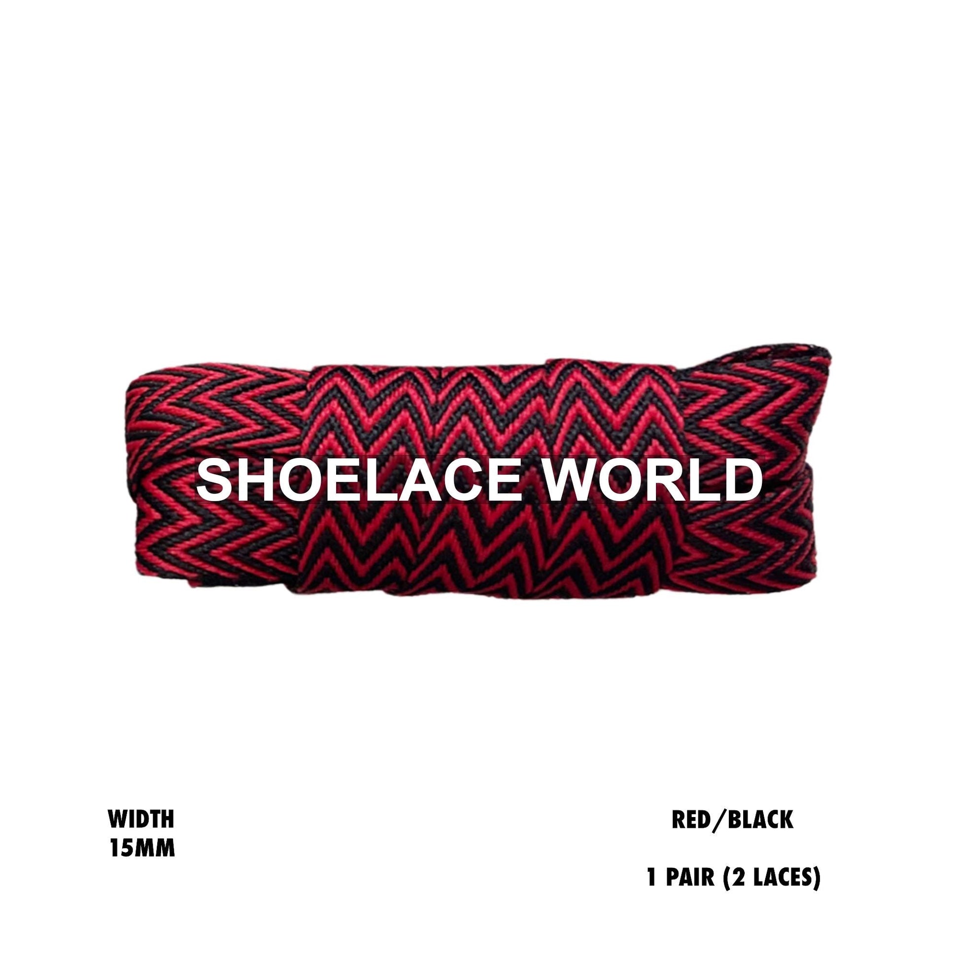 Red/Black W-Threaded Pattern Flat Shoelaces 15mm Colorful Pattern Laces Ships Out From The USA Next Day
