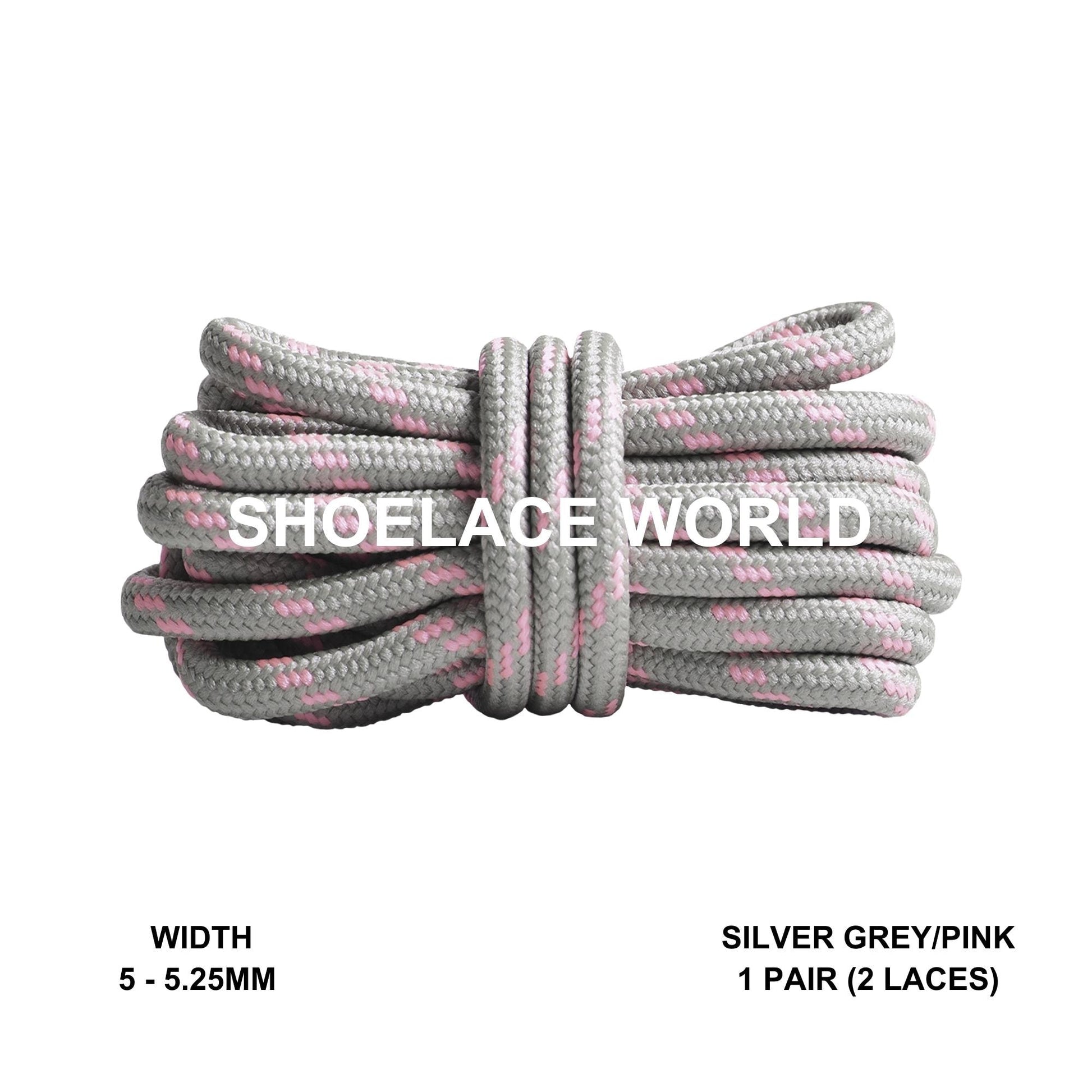 Silver Grey / Pink Rope Round Shoelaces 3/16 Inch 5-5.25mm For Boot Hiking Jogging Trekking Durable Laces Ships Out From The USA Next Day