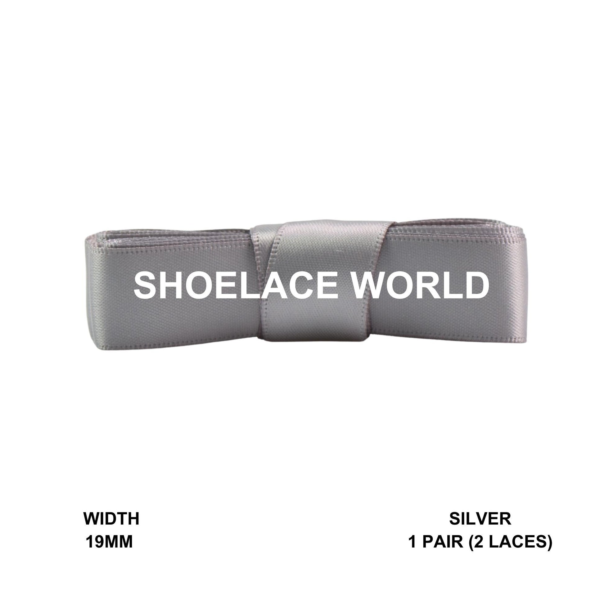 Silver Ribbon Shoelaces 19mm 3/4th Inch Velvet Satin Laces Ships Fast From The USA