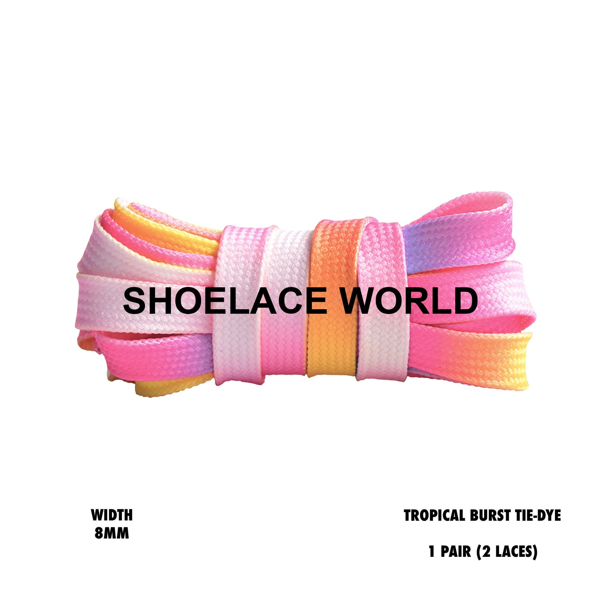 Tropical Burst 8mm Tie Dye Flat Shoelaces Colorful Fun Laces Ships Out From The USA Next Day