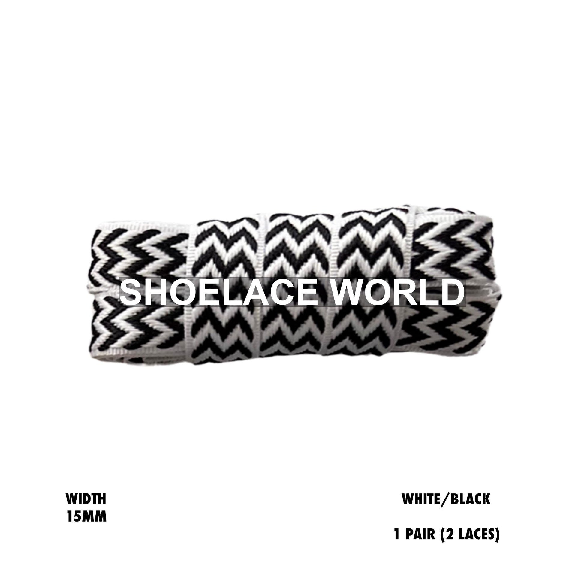 White / Black W-Threaded Pattern Premium Double Layer Flat Shoelaces 15mm Colorful Pattern Laces Ships Out From The USA Next Day