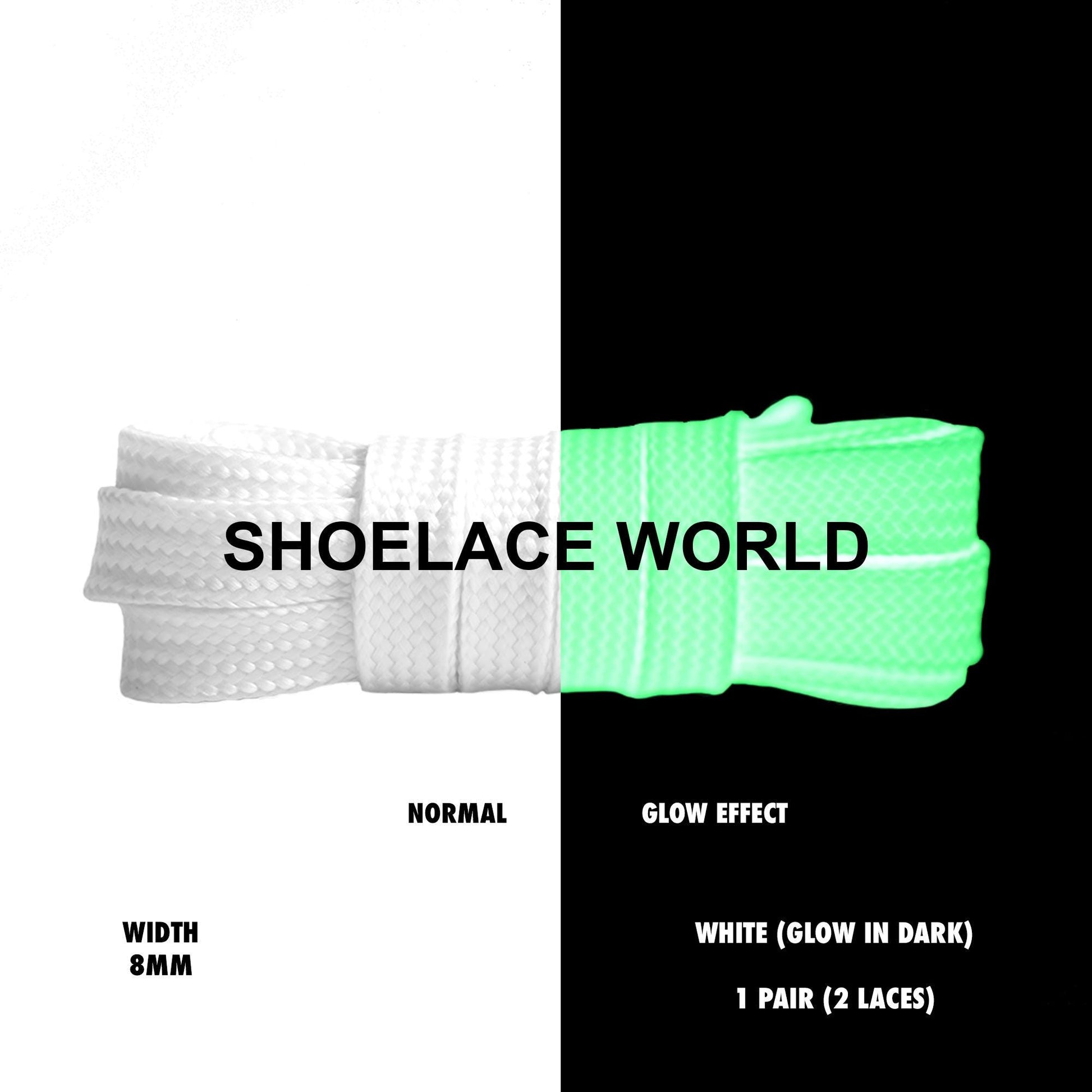 White Glow In Dark Flat Shoelaces 5/16 Inch 8mm Luminous Laces Ships Out From The USA Next Day