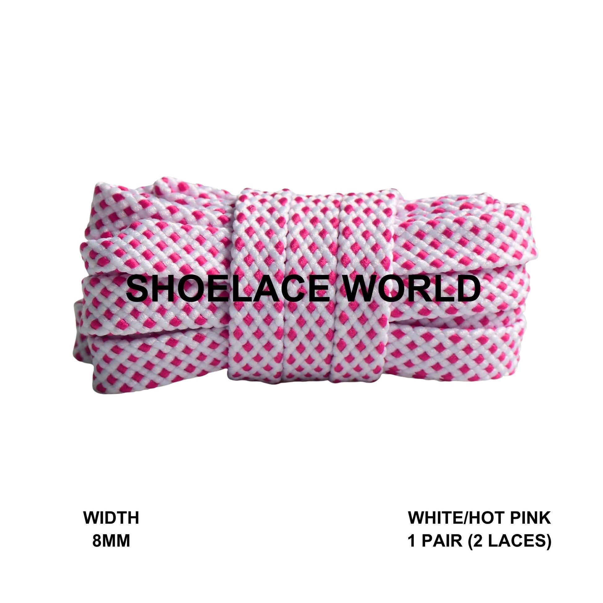 White / Hot Pink Dot Pattern Flat Shoelaces 8mm Colorful Pattern Laces Ships Out From The USA Next Day