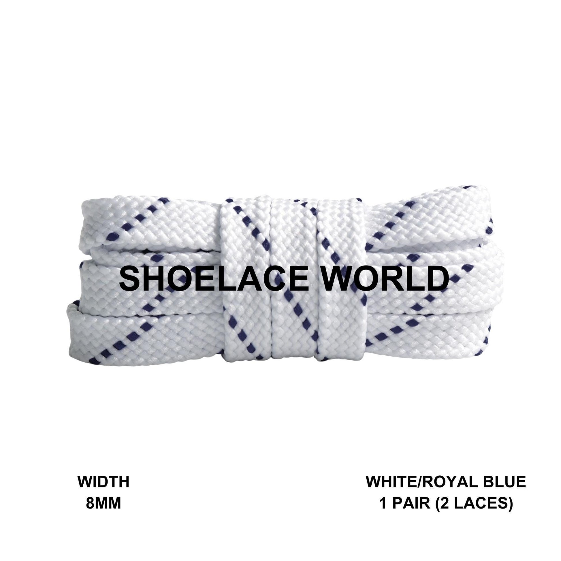 White / Royal Blue Pattern Flat Shoelaces 8mm Colorful Pattern Laces Ships Out From The USA Next Day