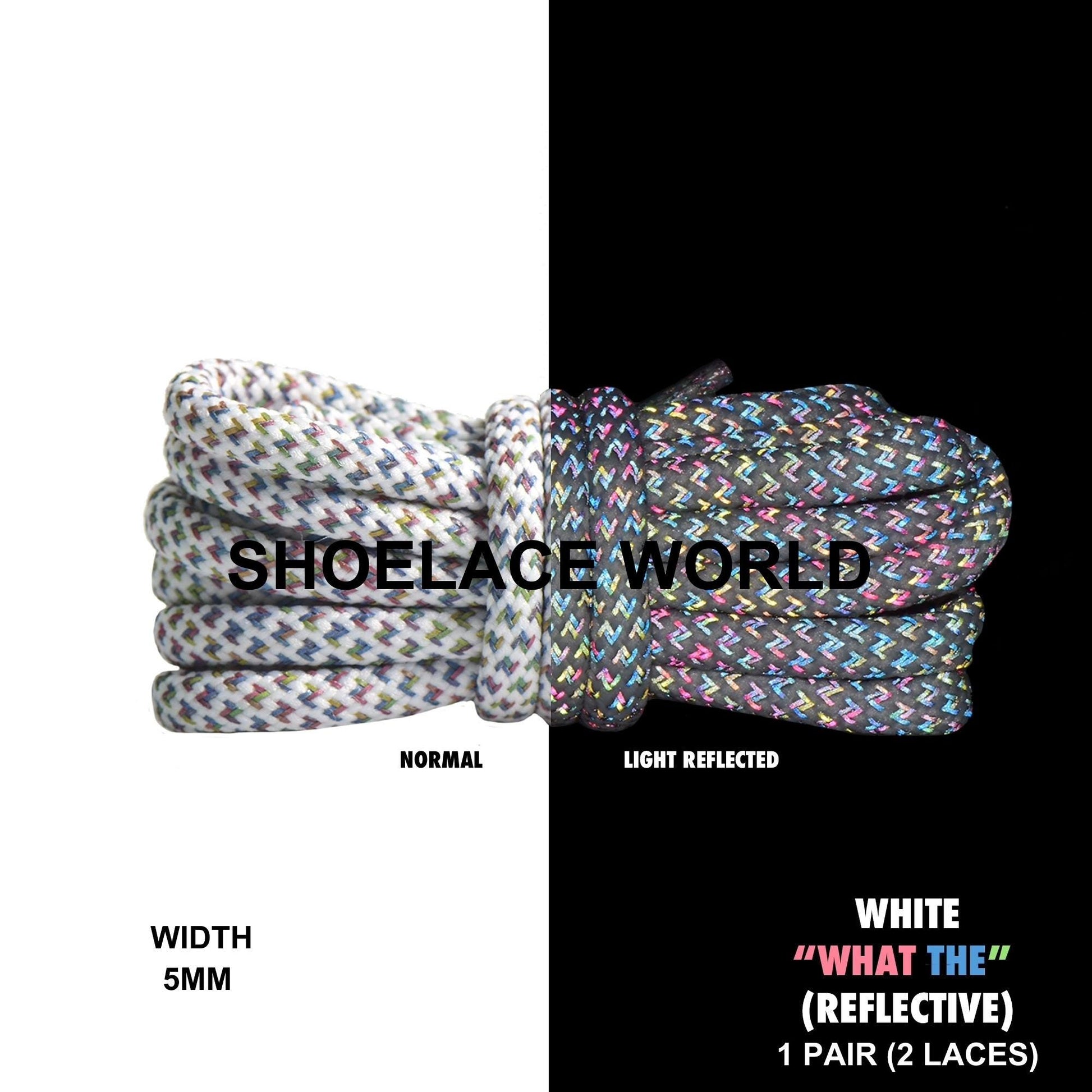 White "What The" V2 Reflective Premium Rope 47 Inch Shoelaces 5mm Compatible 350 Replacement Colorful Laces Ships Out From The USA Next Day