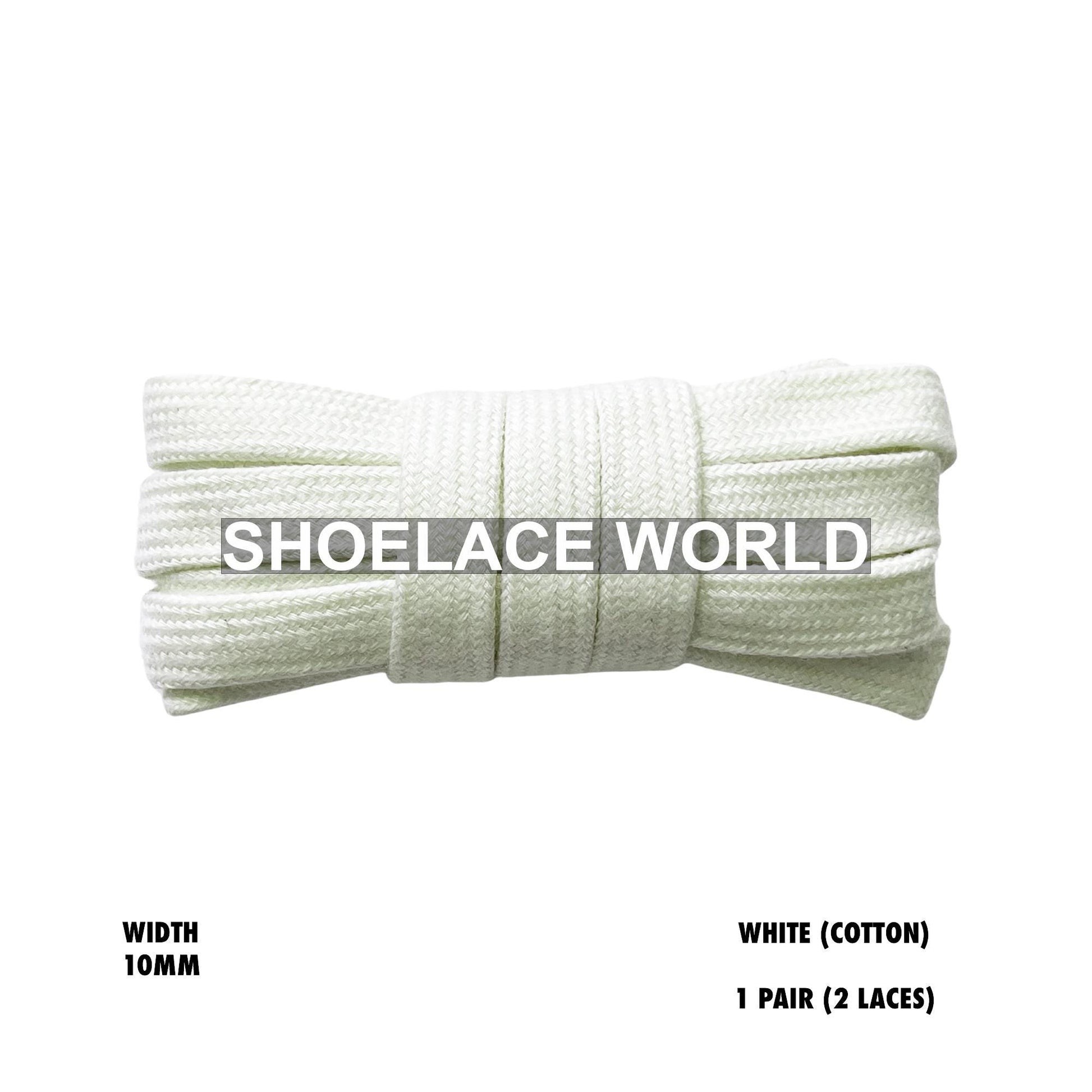 White Wide Cotton Flat Shoelaces 10mm Laces Ships Out From The USA Next Day