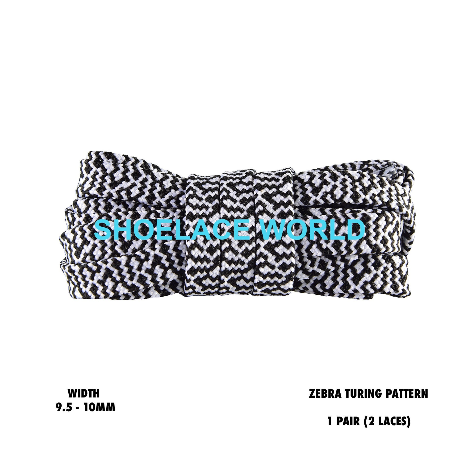 Zebra Turing Pattern Two Tone Flat Shoelaces 9.5 - 10mm Colorful Pattern Laces Ships Out From The USA Next Day